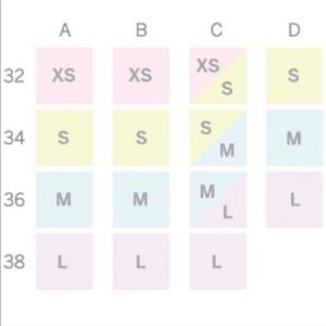 Aqua VS Bralette has double adjustable straps, lined, is pull-on style. No underwire. Size Small fits bra sizes 32C 32D, 34A, 34B, 34C.(see size chart).