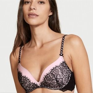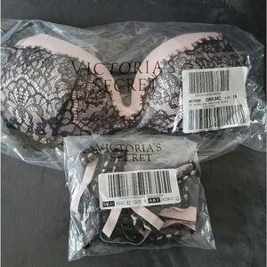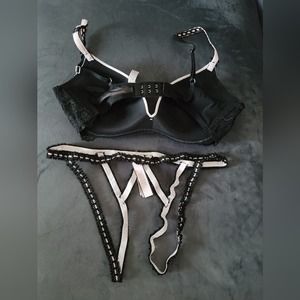 Victoria's secret crotchless lingerie set. Black and pink. 34C and Medium