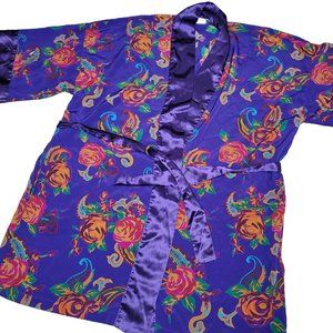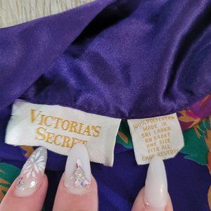 Victorias secret gold label silky purple polyester floral robe one size fit all
