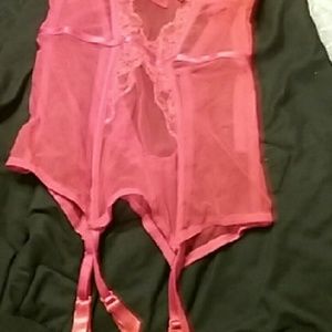 VS Sexy Red Lingerie very beautiful has diamonds on the bra and corset fitting size 34B push up bra.