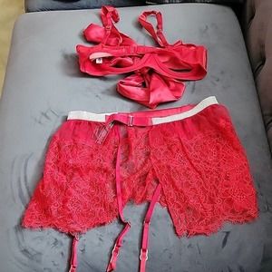 Victoria's secret red lingerie set. Garter skirt XS Small, Small bow bra.