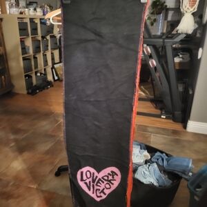 84" long by 12" wide. Black on one side and pink and red on the other. Great condition.