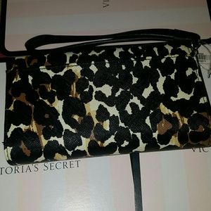 Brown leopard faux leather brand new phone case with removable wristlet handle. My samsung 6 plus fits perfectly. Never used with tag still attached! A heart shaped mirror is a +😊 n a back pocket.