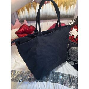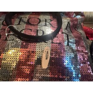 NWT victoria's Secret VS black and sequin bling signature stripe iconic shopping tote bag/purse/pocketbook w/leather handles