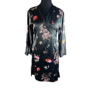 Victorias secrets VS floral black lace chantilly kimono robe M/L sexy
