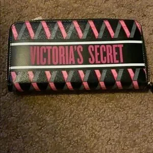 Brand new ribbon design black and pink Victoria’s Secret wallet. in original protective packaging. this wallet has 8 card slots in each side and a large pocket on top on each side as well. 16 card slots and 2 larger pockets. with the middle being a zippered pocket. Thank you “1BR”