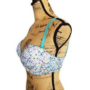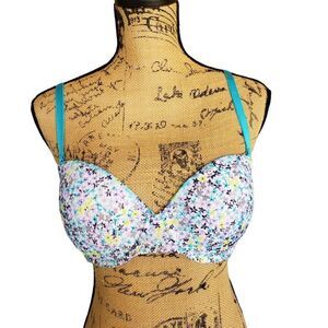 Victoria's Secret 34D Lace Push Up Sexy Sweetheart Multi-Way Underwire Floral Teal Bra 34D