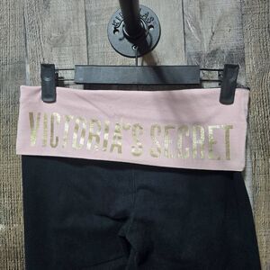 Victoria's Secret Black And Pink Foldover Waist Leggings