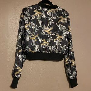 Victoria's Secret Black Luxe Palm Satin Feel Bomber Cropped Jacket Size S