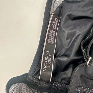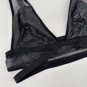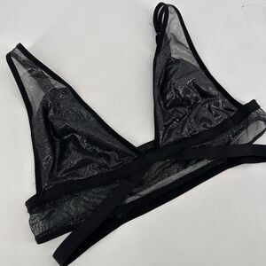 Victoria’s Secret Caged Bra Bralette Black Silver Foil Mesh Shine & Plunge Large