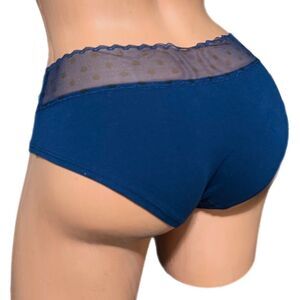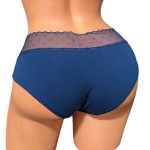 Victorias Secret Cotton Low Rise Dot lace waist Hiphugger Hipster Panty Navy M