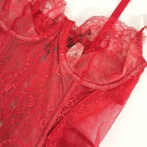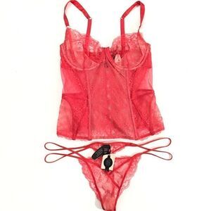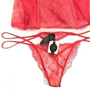Victoria’s Secret Designer Collection Corset 34B v-string panty Medium Red