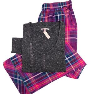 Victoria’s Secret pajama set the Dreamer flannel plaid pants & long sleeve Henley top sleepshirt