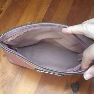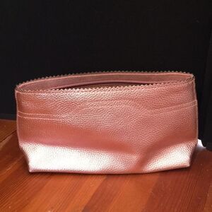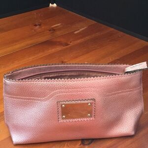 This is a VS pink colored faux leather pouch / clutch with a silver logo reading “Victoria’s Secret the sexiest on earth”. This is used and in good condition with some dust / debris inside the pouch. Some wear at the edges as you can see in photos so please view closely.