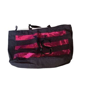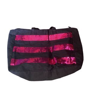 Victoria's Secret HUGE Zippered Tote, Black with Hot Pink Sequins