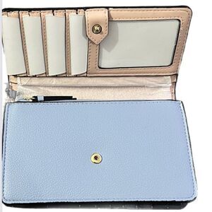 A Wallet and a clutch in one : This Keeps everything organized and your look effortless . In pastel colorblock with V monogram hardware