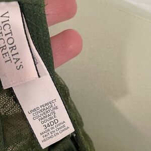 Victoria’s Secret Lined Perfect Coverage Green Lace Overlay Bra Size 34DD