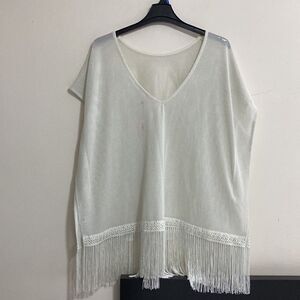 Victoria’s Secret M Lurex Mesh Fringe Boho Tunic Open Back Ivory Cover Up Top