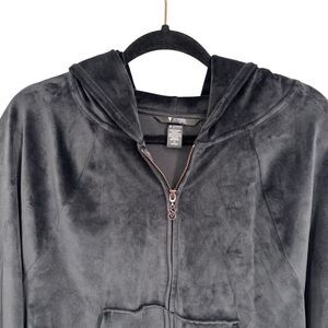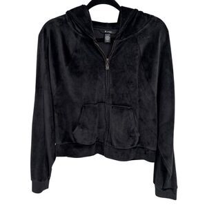 Victoria's Secret On Point Velour Full Zip Cropped Hoodie Jacket Black Medium