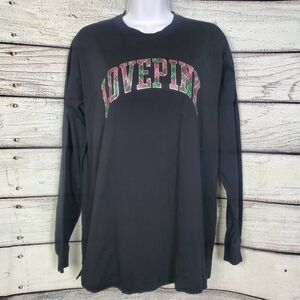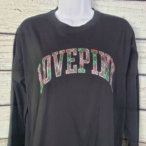 Victoria’s Secret PINK Black LOVE PINK Long Sleeve Shirt Plaid Logo Women’s M
