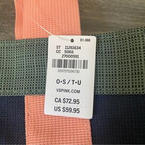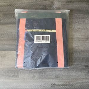 Brand new with tags in the original packaging. Victoria’s Secret PINK XL Weekender Tote Bag. Navy blue with accents in pinky/peach, olive green, pale yellow and a touch of periwinkle blue on the zipper pulls. Spacious interior with 2 slip pockets and a larger zipper pocket. There’s also an exterior zipper pocket + the top zips closed. Please see photo section for approximate flat measurements.