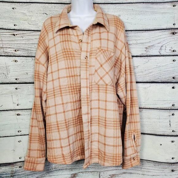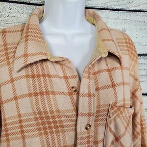 Victoria’s Secret PINK Women’s Oversized Plaid Button Down Shirt Beige Tan Size