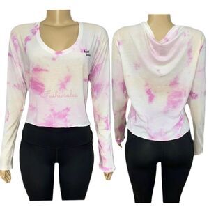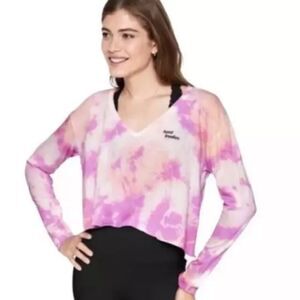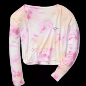 Victoria’s Secret PINK long sleeve V-neck Lightweight Crop tee shirt top tie dye