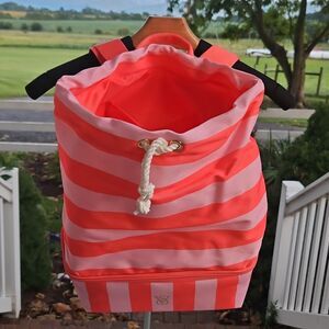 Victoria's Secret Pink Coral Stripe ULTIMATE BEACH BAG Backpack & Cooler 2n1 NEW