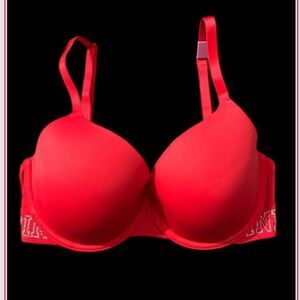 Victoria’s Secret Pink Wear Everywhere T shirt Lightly Lined Logo Red Bra 32DD