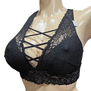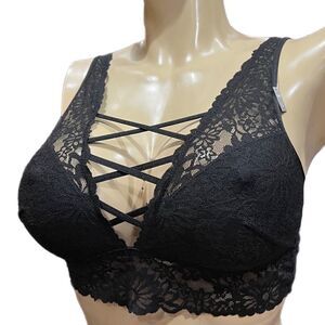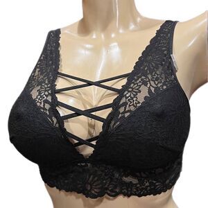 Victoria’s Secret Pink Unlined Sexy Strappy front Bralette Bra black Large