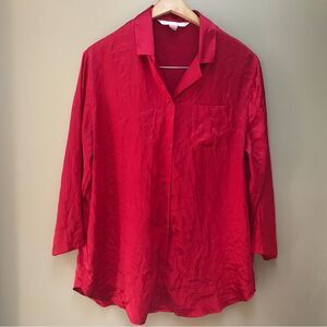 Victoria's Secret Red Satin Button up Night Shirt (M)