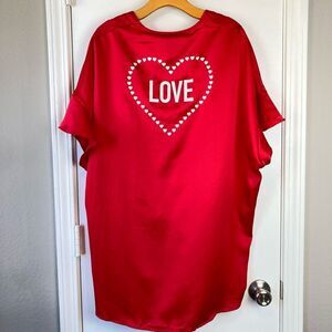 Victoria’s Secret Red Satin LOVE Heart Silky Kimono Robe One Size Honeymoon NWT