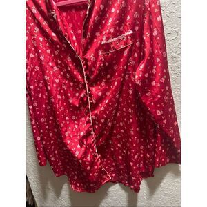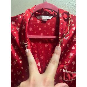 Victoria’s Secret Red With Hearts And Flowers Button Up Sleep Top Y2K Woman’s Si