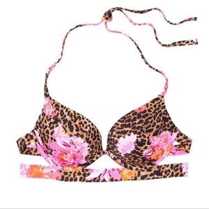 Victoria’s Secret Rosarito Push-Up Padded Halter Swim Top Cheetah Peony