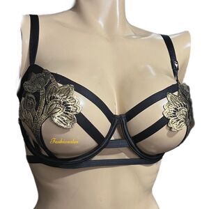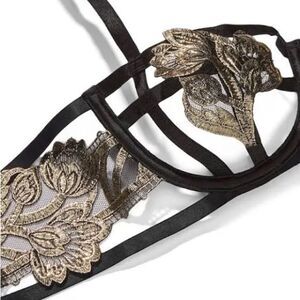 Seduction , Skin and Romantic details prove you can have it all in this strappy open cup bra , grandes in a bouquet of delicate floral embroidery