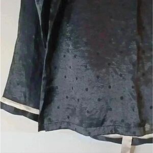 Elegant black satin shirt featuring white trim and a stylish pocket detail.