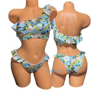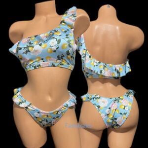 Victoria’s Secret Swim Ruffle One-Shoulder Bikini Top & bottom set Blue Lemon