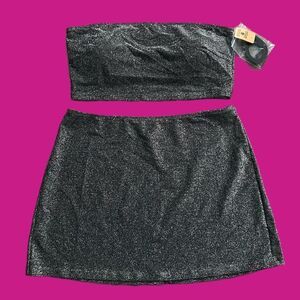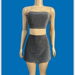 Victorias Secret Swim Set Shimmer Strapless Padded Bikini top & Skirt gray Large