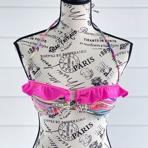 Victoria’s Secret Swim V Wired Printed Bandeau Halter Ruffle Bikini Top