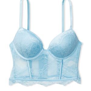 Victorias Secret Very Sexy Bombshell Add-2-Cups Push Up Corset Top bra blue 34C