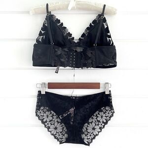 Victoria’s Secret Very Sexy Unlined Floral Embroidered Long Line Bralette & No Show Mesh Back Bikini Panty