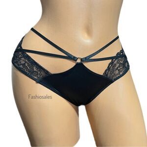 Victorias Secret Very Sexy Satiny Strappy Lace Cheeky panty Black Medium