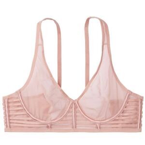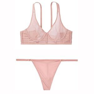 Victoria’s Secret Very Sexy Unlined Mesh Full-coverage Plunge Bra and Very Sexy V-String Panty In Demure Pink