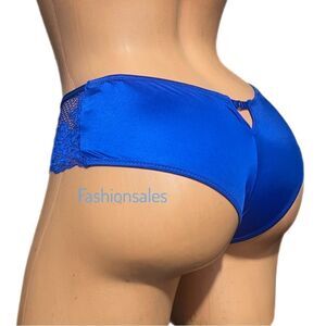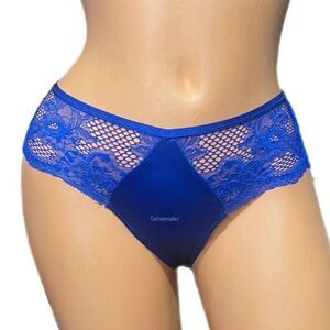 Victorias Secret Very Sexy Satiny fishnet lace Supersof Satin Cheeky panty Blue