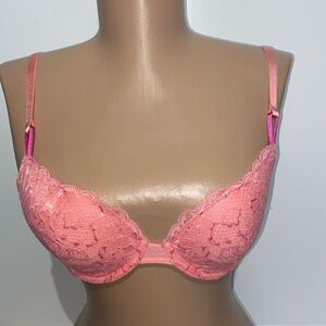 Victoria's Secret Women's Peach Floral Lace Lined Underwired Demi Bra Size 34B