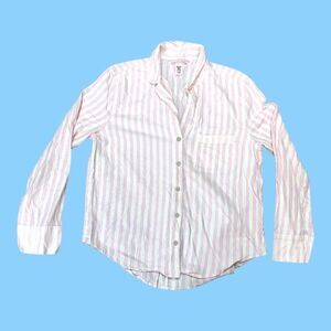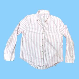 Victorias Secret Womens Striped Flannel Pajama Set S/P 100% Cotton White & Pink