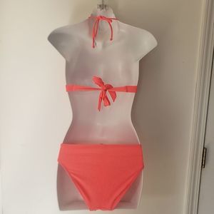 EUC hot pink Victoria's Secret bikini. Top size a size S. Bottoms a size M. Halter style top. Hipster cut bottoms.