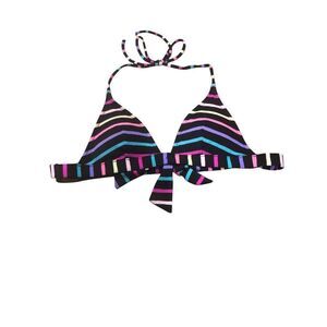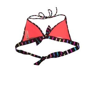 Victoria’s Secret black with bright multi striped padded halter bikini top size