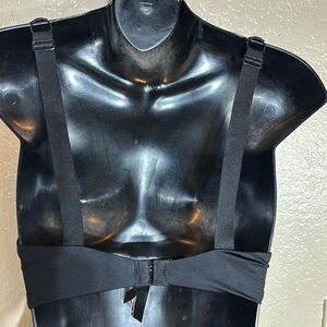 Victoria’s Secret 32C black bombshell plunge bra with bling straps logo black and white crystal rhinestone