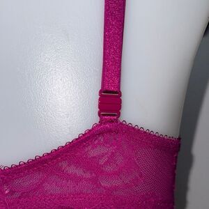 Indulge in the luxurious feel of this Victoria's Secret push-up bra, crafted in a vibrant pink hue. Featuring delicate lace trim and adjustable straps, this bra offers both elegance and support. Its molded cups provide a flattering shape, making it a perfect addition to your intimate collection.